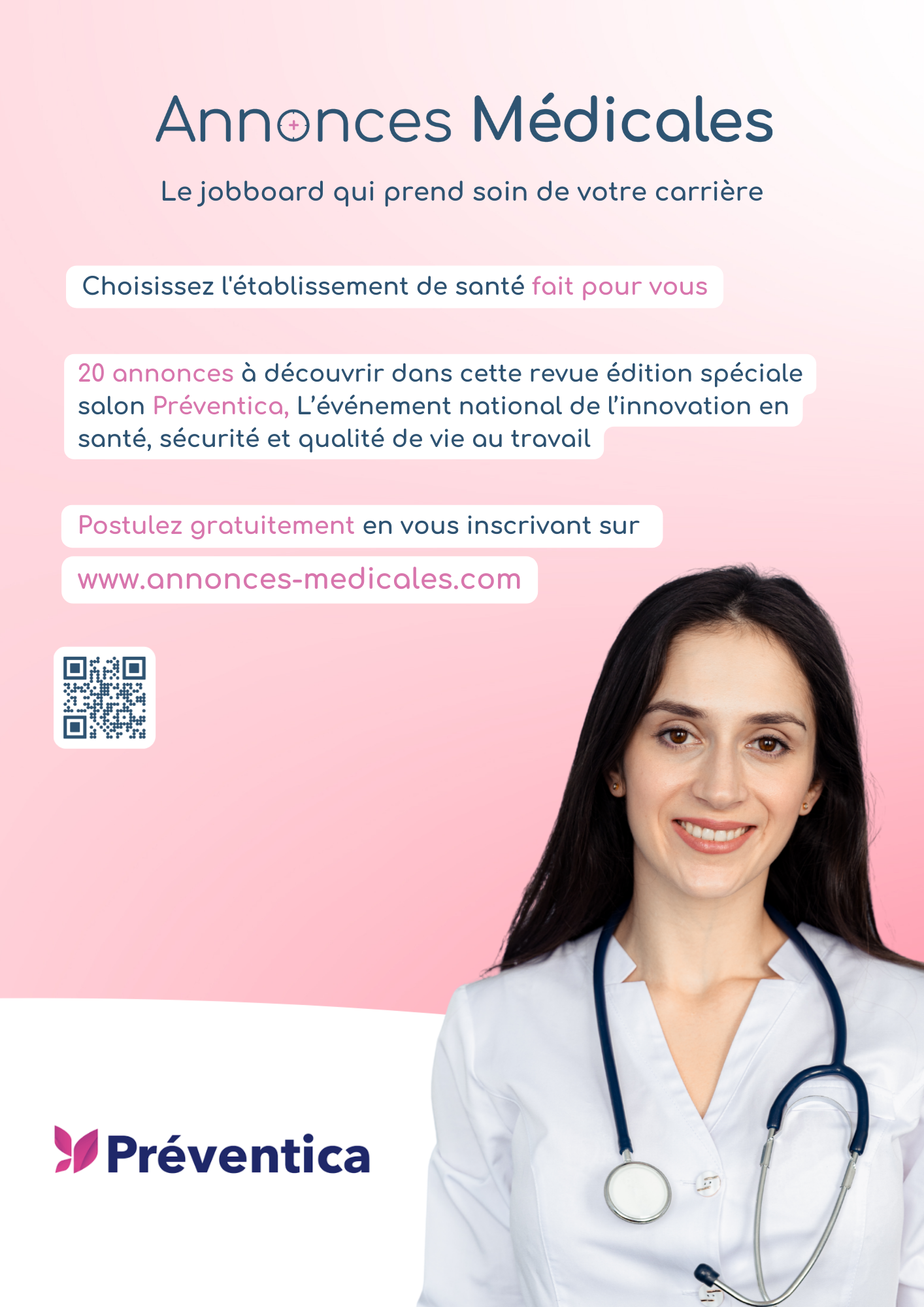 Maximisez l'impact de vos annonces avec notre solution Web + Print : diffusion en ligne instantanée et magazines d'offres d'emploi imprimés lors des salons et congrès annuels des professionnels de santé.